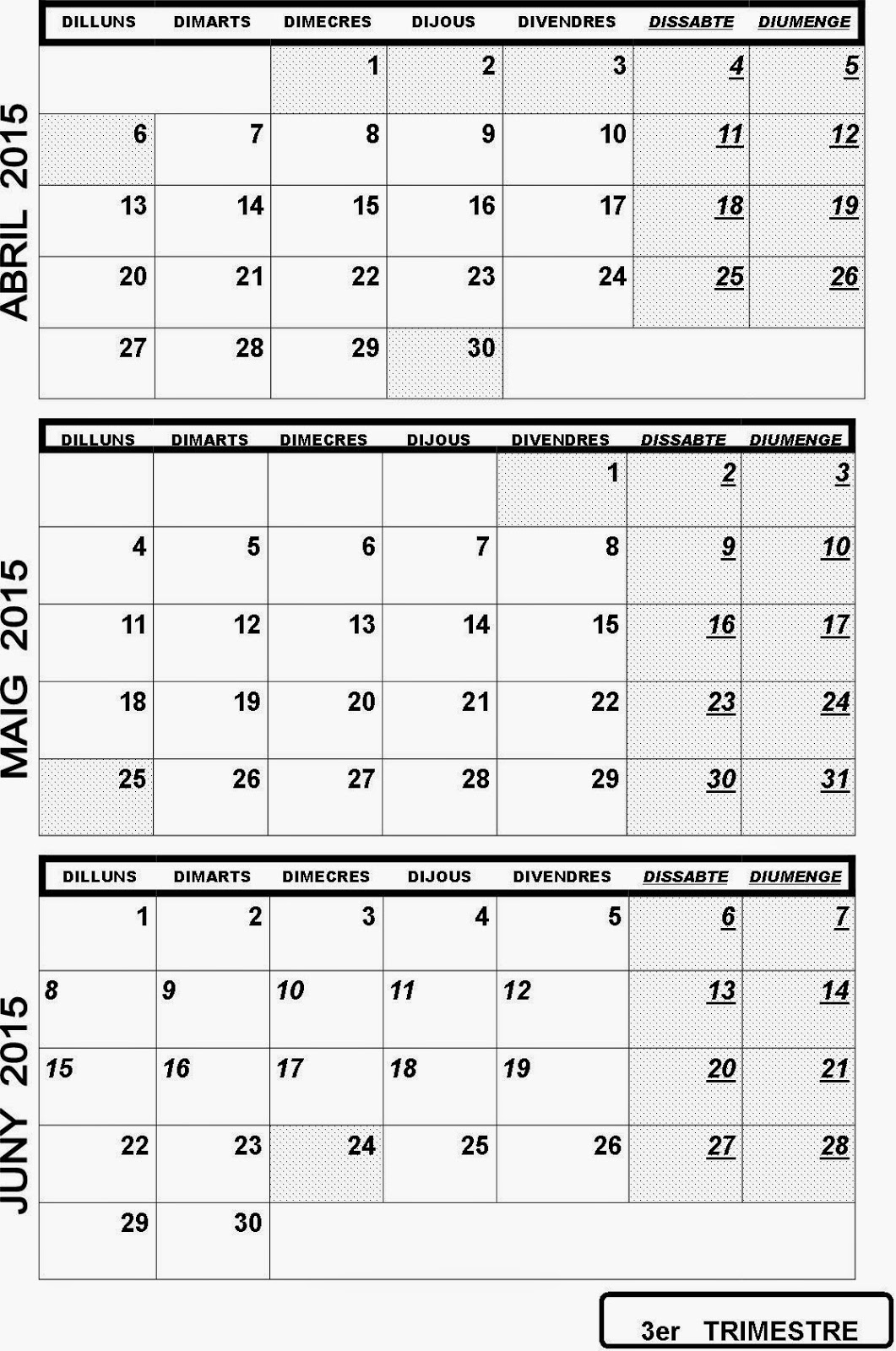 CALENDARIS MENSUALS (Vigileu que totes les escoles no tenen els mateixos dies de festa!)